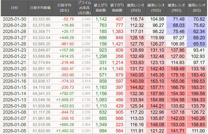 ↑15日から日経はそんなに下がってないが値下がり銘柄は異様に多いトリック